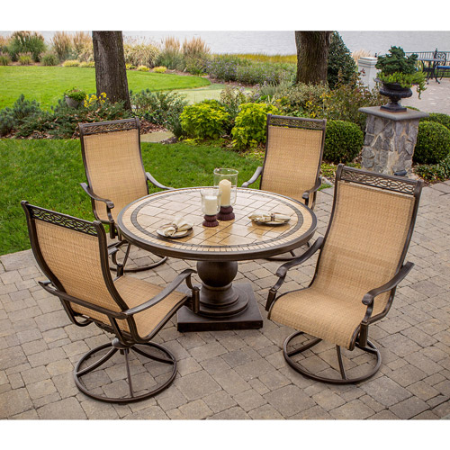 The monaco dining collection by hanover includes stylish a. Includes four outdoor dining chairs, two swivel chairs, and dining table. Sears has patio dining sets for enjoying meals outdoors. The dining table features a classic design, antique finish and traditional cast top with lattice and scrolling border. It is very functional and can be arranged many different ways to meet your needs!