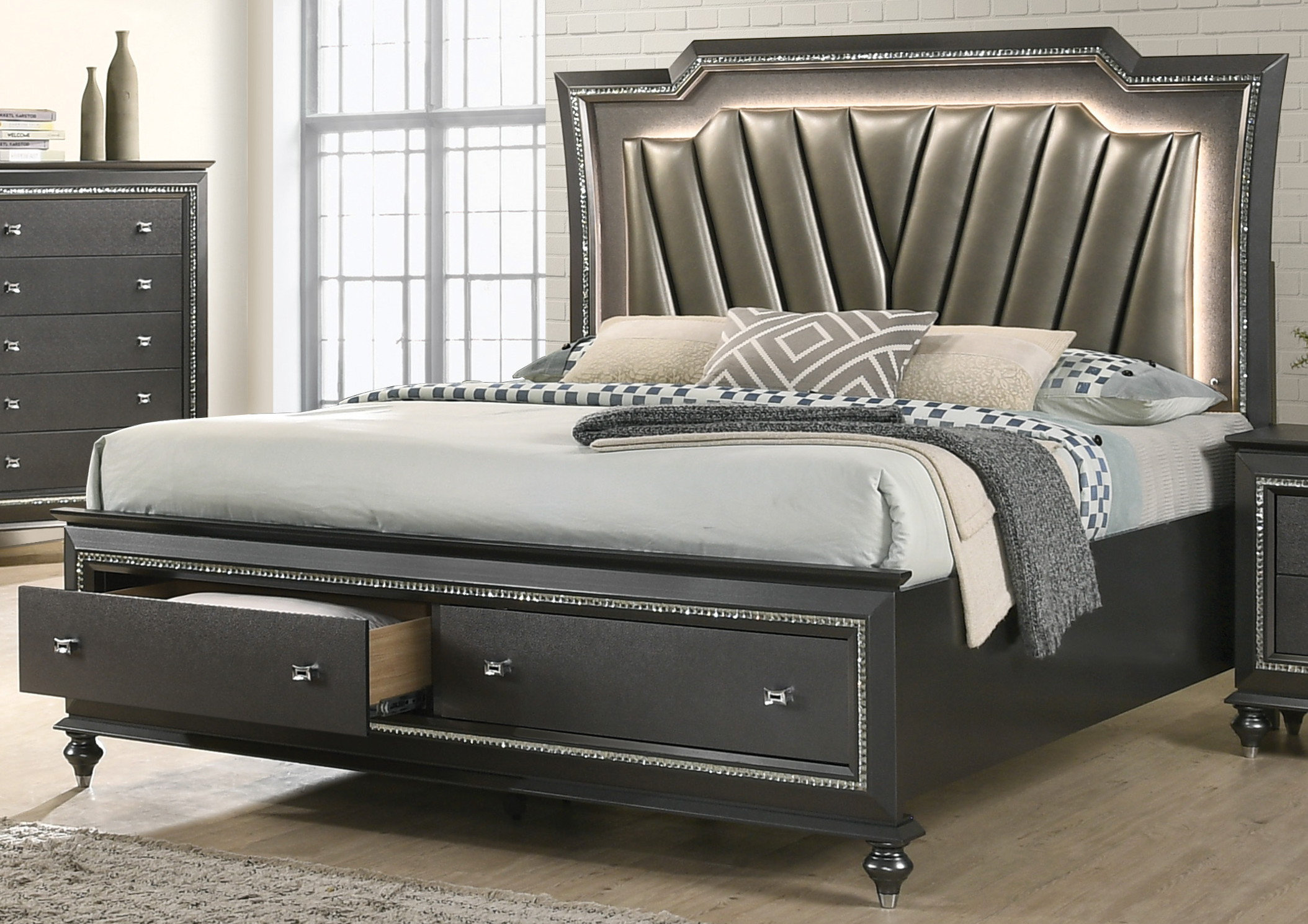 Upholstered Bed With Footboard Storage Trunks - Jonathan Louis Soraya California King Upholstered Bed With Footboard Storage Fashion Furniture Upholstered Beds - Twin, full, queen, king & cali.